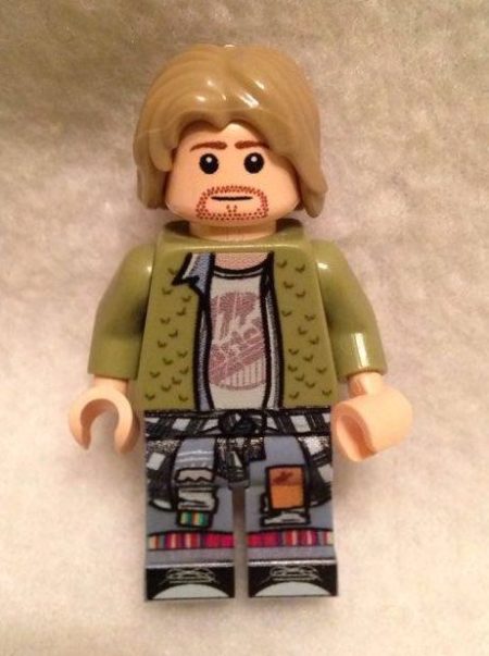 The printing on this minifigure is very detailed. I love the texturing on his top, to make sure you know he is wearing his iconic sweater. I also love how they included a plaid flannel tied around his waist, which was a common part of the look for the whole Grunge scene.