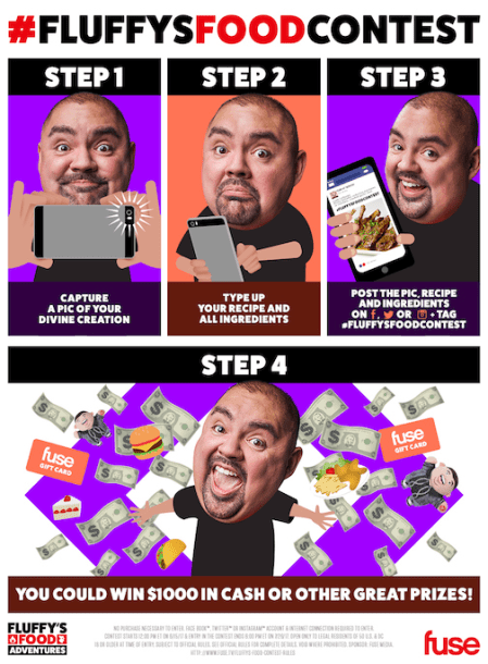 Fuse is giving Fluffy fanatics a chance to show off their foodie skills and win some serious moola! One grand prize winner will receive a check for $1,000, a Bluetooth portable speaker, an Apple Watch, and have his/her winning recipe featured during the Fluffy’s Food Adventures finale episode.