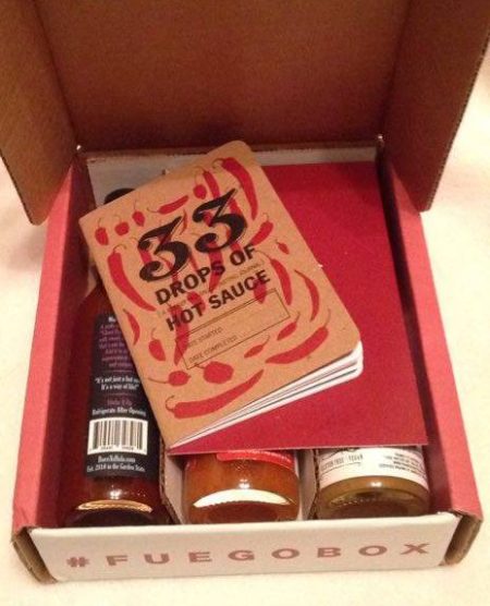 Fuego Box is a hot sauce of the month club focused on craft & small-batch hot sauces. According to the website Fuego Box was created by a guy who went down the hot sauce rabbit hole. It started with an early Tapatío obsession and advanced with the likes of Cholula, Crystal, and Sriracha. After that, things really got crazy… Bhut jolokia and African fatalii peppers; locally harvested, hand-bottled hot sauces; and unique and delicious flavors that go with just about every kind of food.