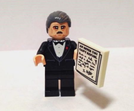 This minifigure perfectly captures The Don’s iconic tuxedo. The detailing on his face is great, it is almost too much detailing! I love the accessory they included, a flat with a contract entitled ‘An Offer You Can’t Refuse” printed on it. That made me laugh, as that is probably one of the most quoted lines from the movie.