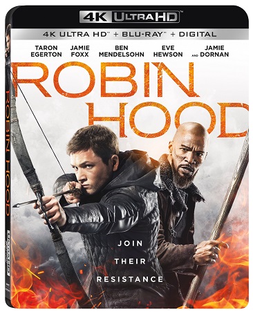 The action-packed epic adventure Robin Hood arrives on Digital February 5 and on 4K Ultra HD™ Combo Pack (plus Blu-ray and Digital), Blu-ray™ Combo Pack (plus DVD and Digital), DVD, and On Demand February 19 from Lionsgate. Directed by BAFTA Award Winner Otto Bathurst (2014, Television Craft – Director – Fiction,“Peaky Blinders”), this rich story is brought to life for today’s audiences using stunning special effects, thrilling battle sequences, and mind-blowing fight choreography. Robin Hood stars Taron Egerton (Kingsman franchise, Sing, Upcoming: Rocketman), Jamie Foxx (Django Unchained, Law Abiding Citizen, Ray), Ben Mendelsohn (Rogue One: A Star Wars Story, The Dark Knight Rises, Ready Player One), Eve Hewson (Bridge of Spies, Blood Ties, Enough Said), and Jamie Dornan (Fifty Shades franchise, The Fall, Anthropoid).