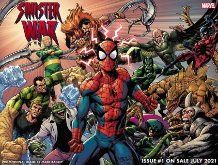 This July, an all-out war between two of Spider-Man’s greatest villains and their own Sinister Sextets erupts in SINISTER WAR! Exploding out of Nick Spencer’s pulse-pounding run on Amazing Spider-Man, this all-new series pits Doctor Octopus’s Sinister Six against Vulture’s Savage Six in a war that puts all of New York City in the crossfire. These deadly groups of foes are out for blood: Spider-Man’s and each other’s! With art by Mark Bagley, SINISTER WAR will be the latest epic in Spencer’s transformative work on the Spider-Man mythos, packed with even more surprising developments including the grand return of Doctor Octopus!