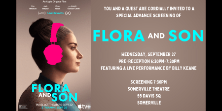 You are invited to attend the advance screening of Flora and Son Wednesday, September 27th at Somerville Theater @ 6:30pm.
