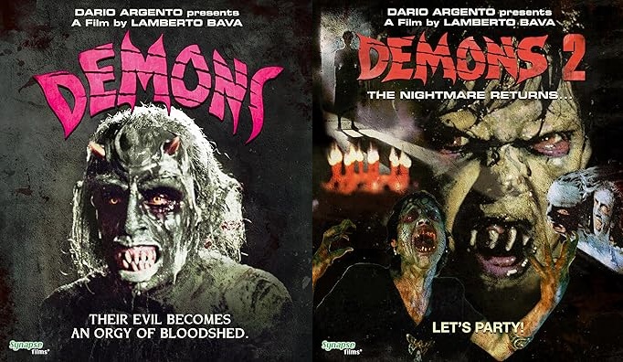 Third we have Demons and Demons 2 on 4K. From director Lamberto Bava (son of Mario Bava) and produced by Dario Argento, they are mid 1980s Italian horror through and through. Both are pretty much the same concept, people watching a movie about demons who then get involved in fighting demons to survive, but man are there some amazing practical effects in them. Demons takes place in a movie theater where all the guests are given complimentary tickets to a mysterious movie screening and after one guest (a hooker type) scratches her face on a mask in the lobby, the bloodshed starts matching the events of the film they are watching. Demons 2 takes place in an apartment complex type building with people in their apartments watching a movie on TV. There is one apartment with a party going on and others with a young kid, a pregnant wife, etc. Like the first film there are side characters in a car outside the events of the buildings that find their way into the buildings. Despite being Italian films they have songs from Bill Idol, Mötley Crüe, Rick Springfield, etc. Demons 2 is also the film debut for actress Asia Argento, daughter of Dario. Are they great movies? Not really and they are more zombie-esque than anything else, but the practical effects are fantastic. Those of us who prefer 80s slasher types with blood and make-up effects will like them. I probably hadn’t seen either film since the 1990s so it was a nice trip down memory lane. They are also jampacked with bonus features like interviews, commentary and more.